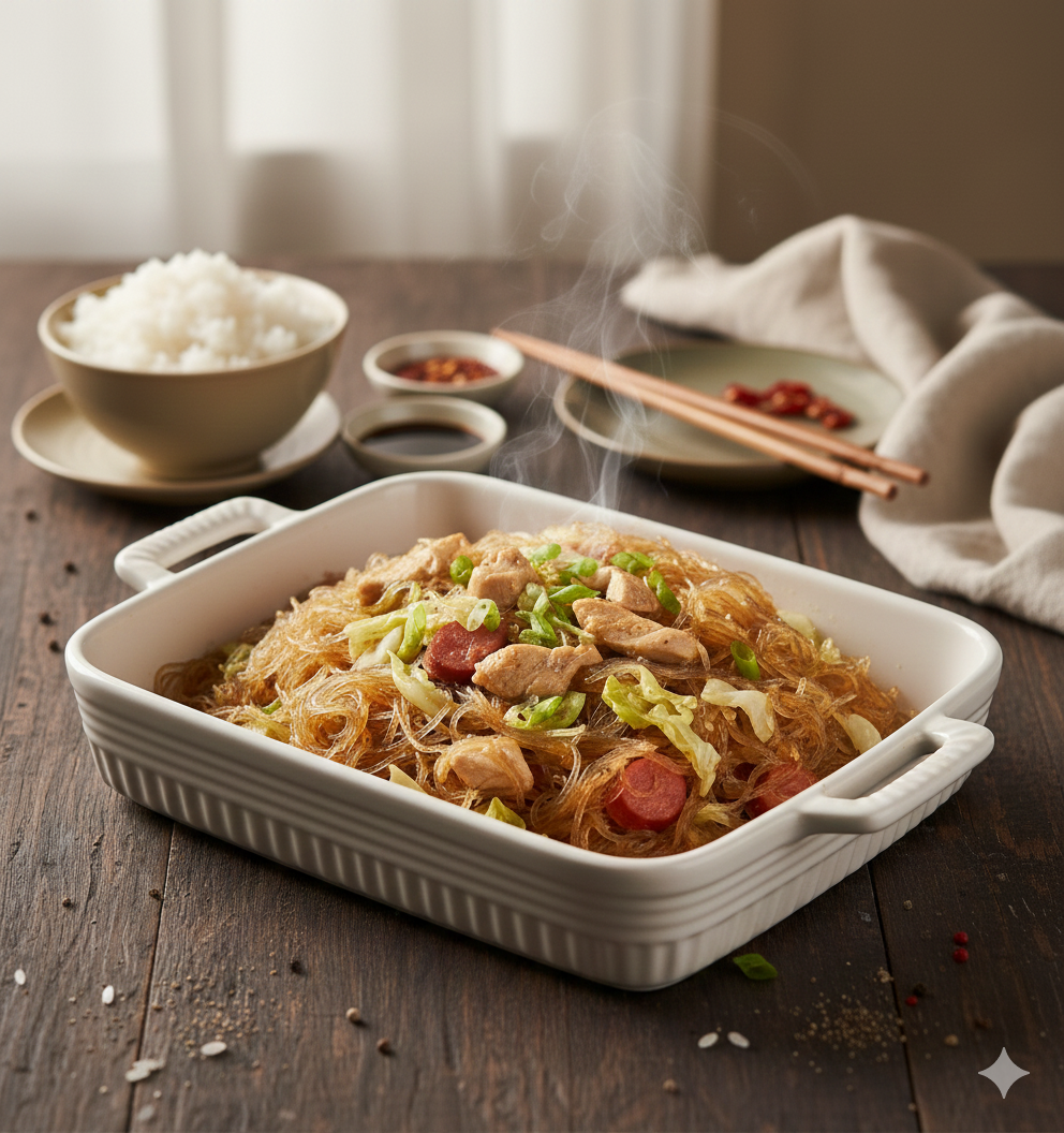 Stir-fried sotanghon noodles loaded with vegetables, chicken, and savory seasoning — a classic Filipino favorite!